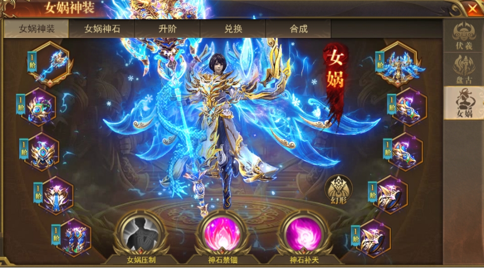 1、新增上古神装-女娲神装,激活女娲之力,获得额外属性加成和压制。